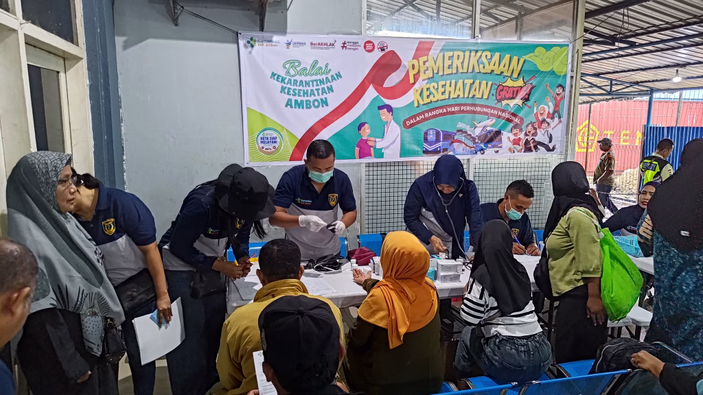 Dalam rangka memperingati Hari Perhubungan Nasional (Harhubnas) ke-55, Balai Kekarantinaan Kesehatan (BKK) Kelas I Ambon melaksanakan kegiatan pemeriksaan kesehatan gratis pada Sabtu, 13 September 2025 bertempat di Terminal Ruang Tunggu Pelabuhan Yos Sudarso Ambon.