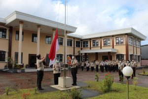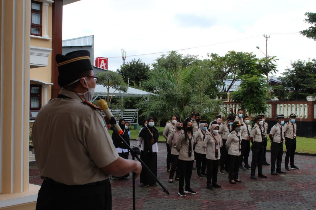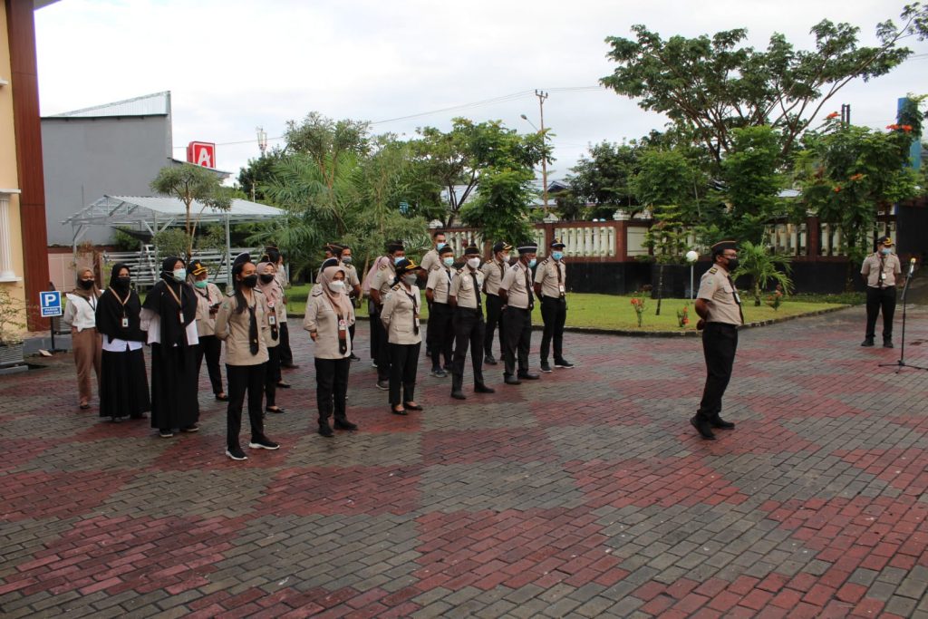 Pelaksanaan apel pagi, memperdengarkan Lagu Kebangsaan Indonesia Raya dan Pembacaan Pancasila di Kantor Kesehatan Pelabuhan Kelas II Ambon dan dikoordinir langsung oleh Kepala Kantor