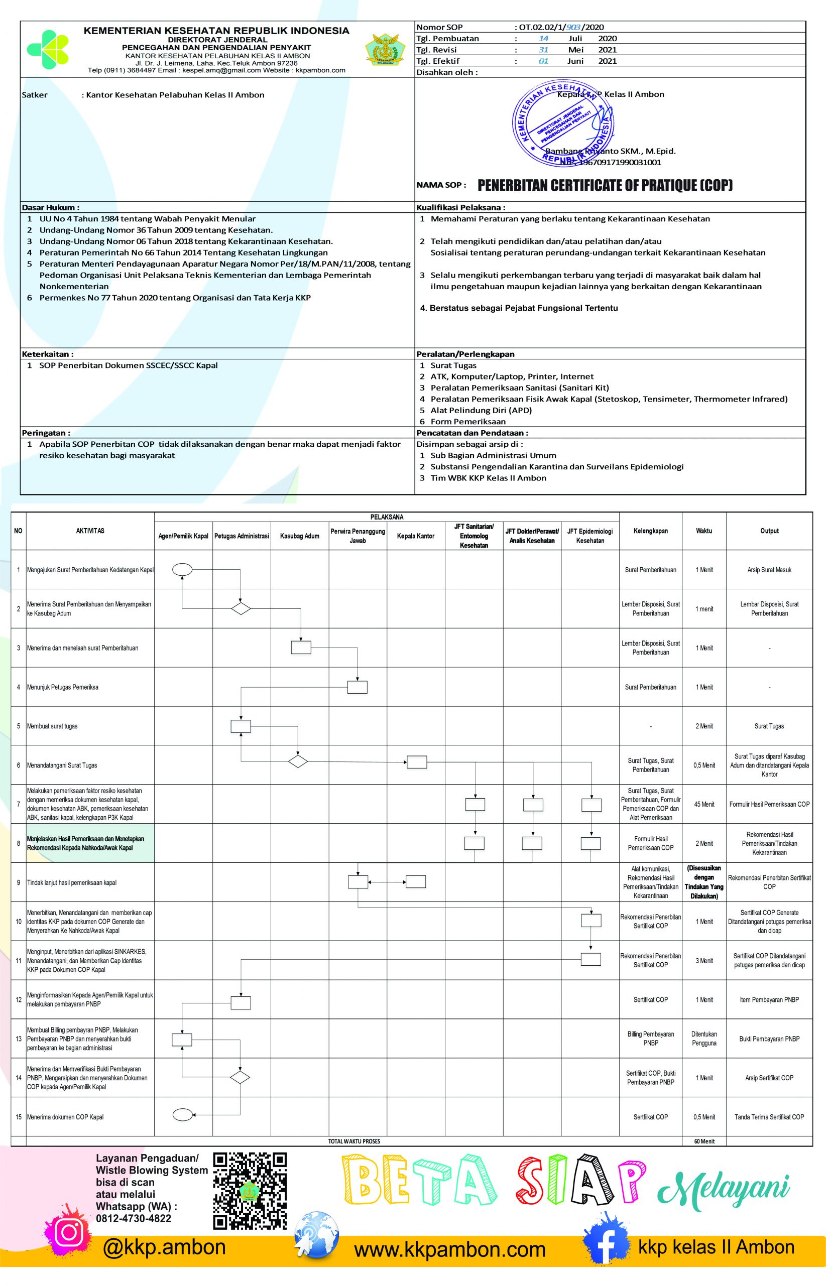 Tak BerkategoriStandar Operasional Prosedur (SOP) Certificate of Pratique Izal R 16 Juni 202116 Juni 20211 min0 SOP Penerbit COP Izal R Navigasi pos 16 Juni 202128 Agustus 2024Standar Operasional Prosedur (SOP) Balai Kekarantinaan kesehatan Ambon16 Juni 202116 Juni 2021Standar Operasional Prosedur (SOP) Port Health Quarantine Clearance (PHQC) Tinggalkan Balasan Batalkan balasanAlamat email Anda tidak akan dipublikasikan. Ruas yang wajib ditandai *Komentar * Nama * Email * Situs Web Simpan nama, email, dan situs web saya pada peramban ini untuk komentar saya berikutnya. Δ