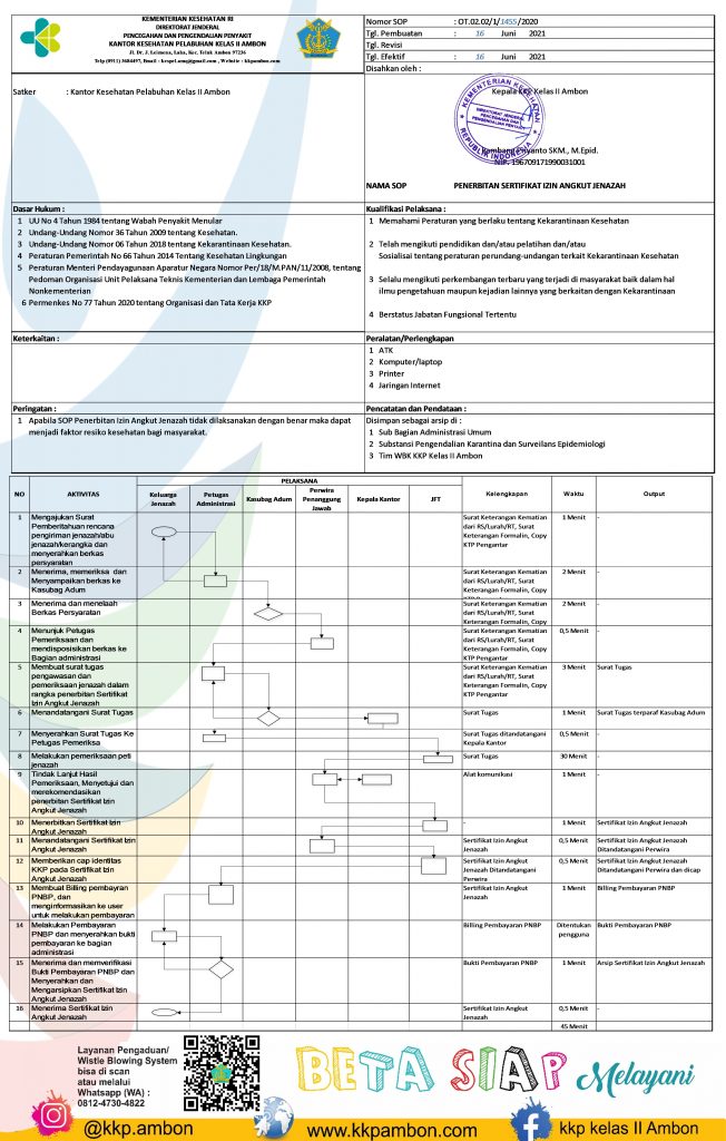Tak BerkategoriStandar Operasional Prosedur (SOP) Izin Angkut Jenazah Izal R 14 September 202114 September 20211 min0 SOP Izin Angkut Jenazah Izal R Navigasi pos 14 September 202114 September 2021Standar Operasional Prosedur (SOP) Penerbitan Buku Kesehatan kapal14 September 202114 September 2021Standar Operasional Prosedur (SOP) Izin Angkut Orang Sakit Tinggalkan Balasan Batalkan balasanAlamat email Anda tidak akan dipublikasikan. Ruas yang wajib ditandai *Komentar * Nama * Email * Situs Web Simpan nama, email, dan situs web saya pada peramban ini untuk komentar saya berikutnya. Δ