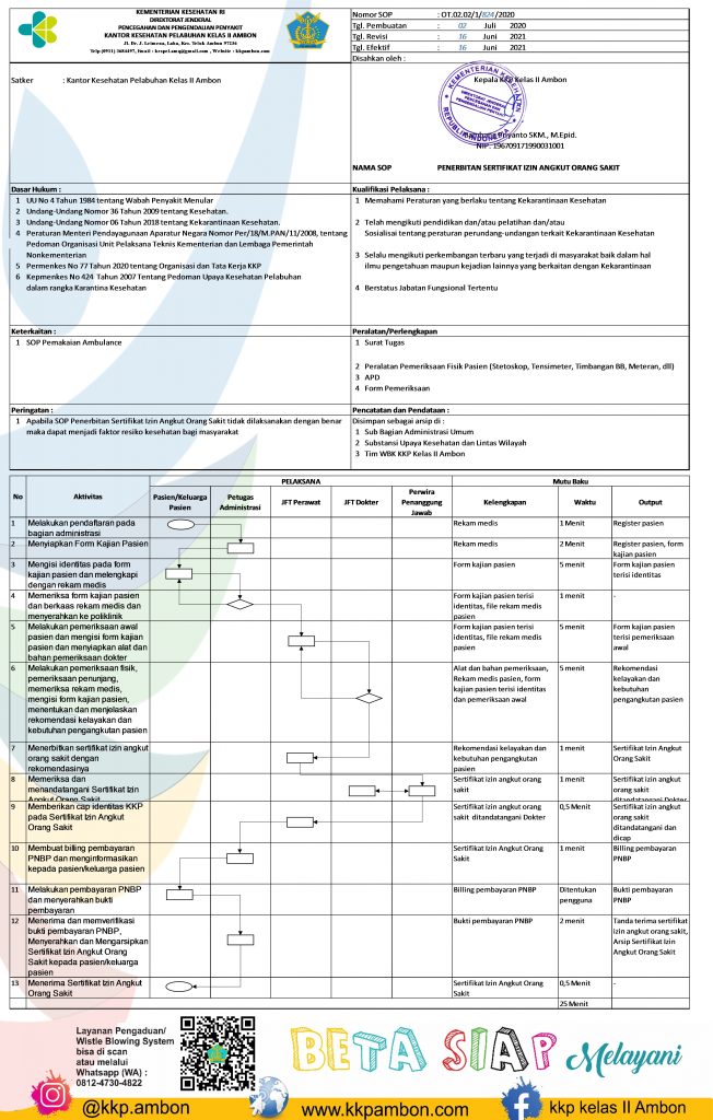 Tak BerkategoriStandar Operasional Prosedur (SOP) Izin Angkut Orang Sakit Izal R 14 September 202114 September 20211 min0 SOP Izin Angkut Orang Sakit Izal R Navigasi pos 14 September 202114 September 2021Standar Operasional Prosedur (SOP) Izin Angkut Jenazah14 September 202114 September 2021Standar Operasional Prosedur (SOP) Vaksinasi Tinggalkan Balasan Batalkan balasanAlamat email Anda tidak akan dipublikasikan. Ruas yang wajib ditandai *Komentar * Nama * Email * Situs Web Simpan nama, email, dan situs web saya pada peramban ini untuk komentar saya berikutnya. Δ
